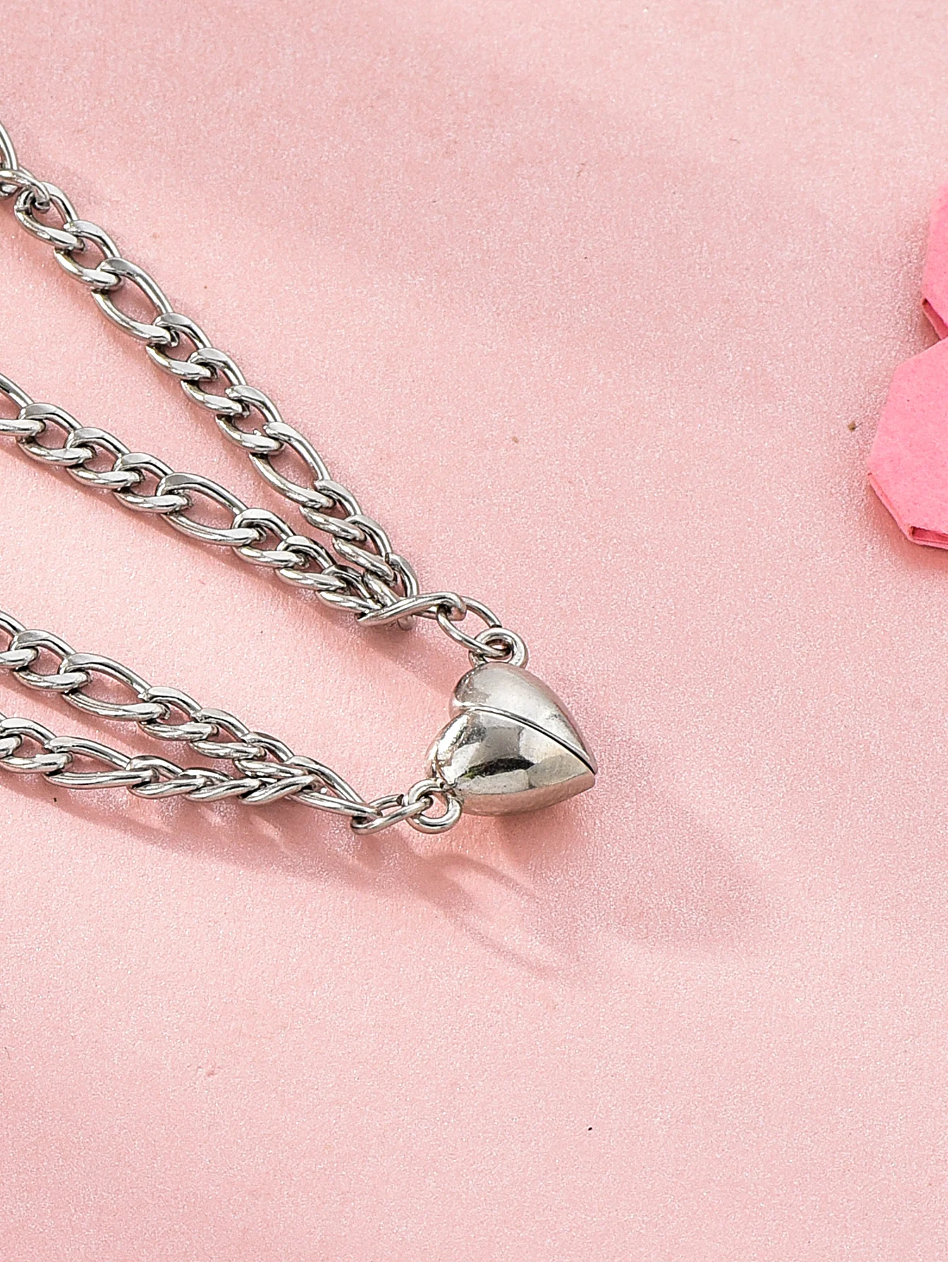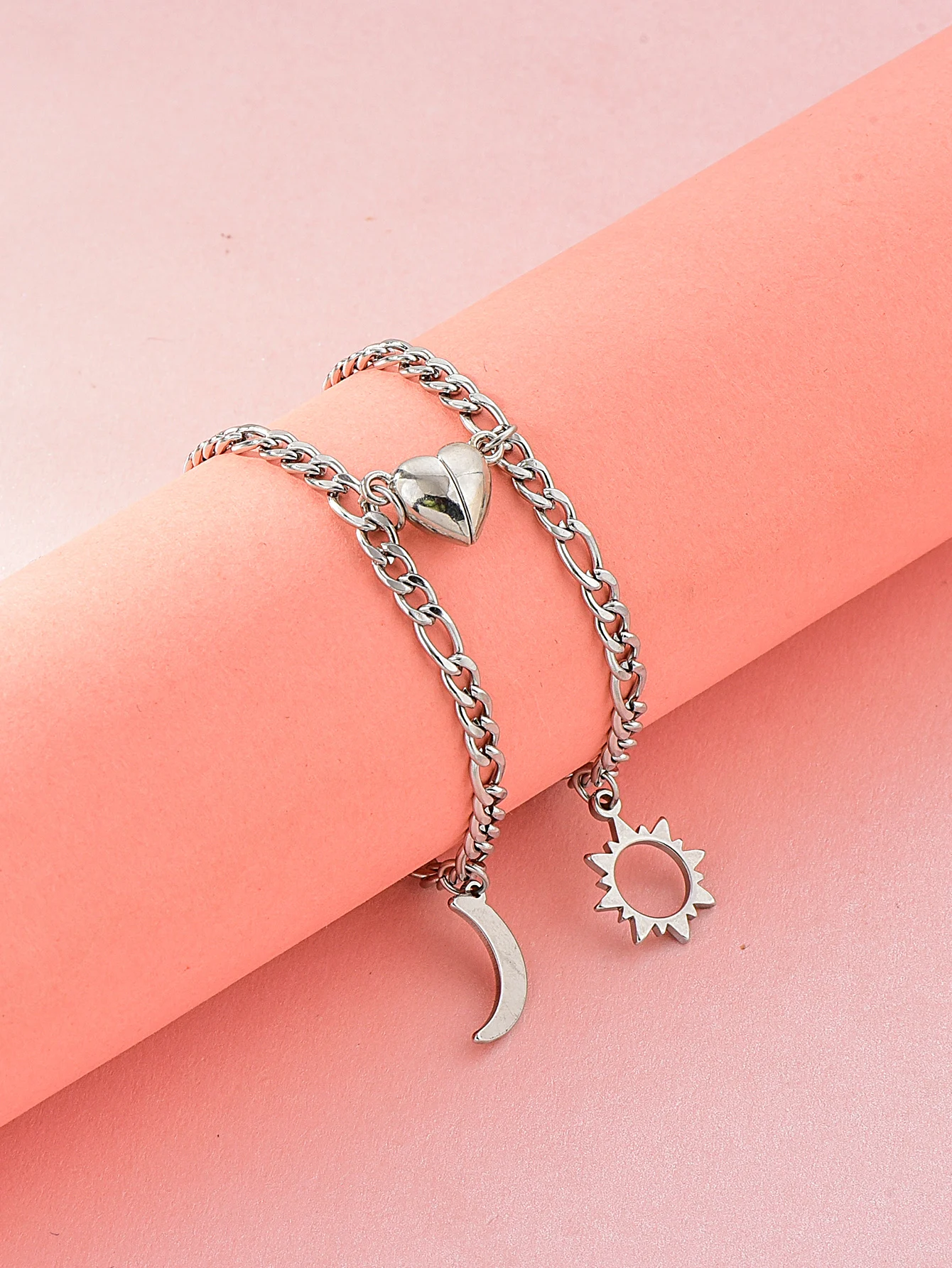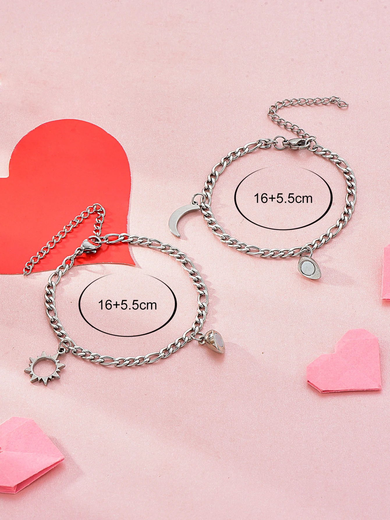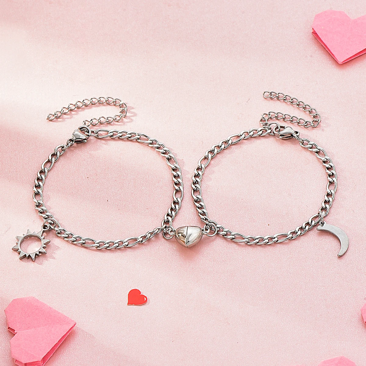 2 pieces of new Valentine’s Day fashionable sun and moon love-shaped magnetic buckle couple besties stainless steel bracelets