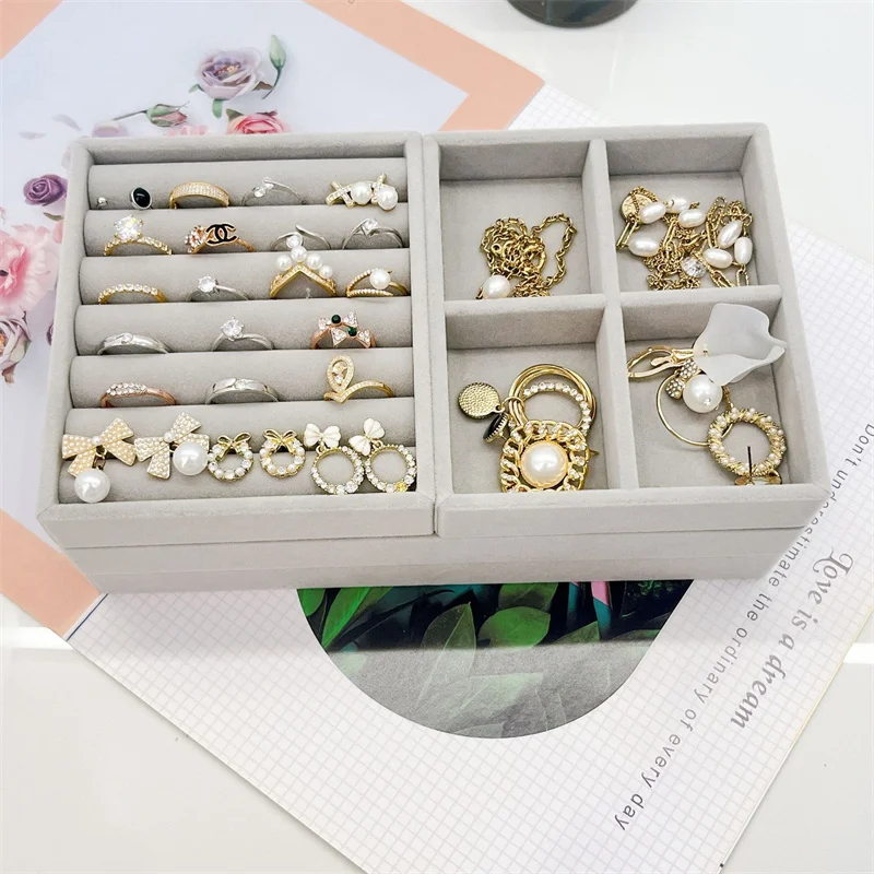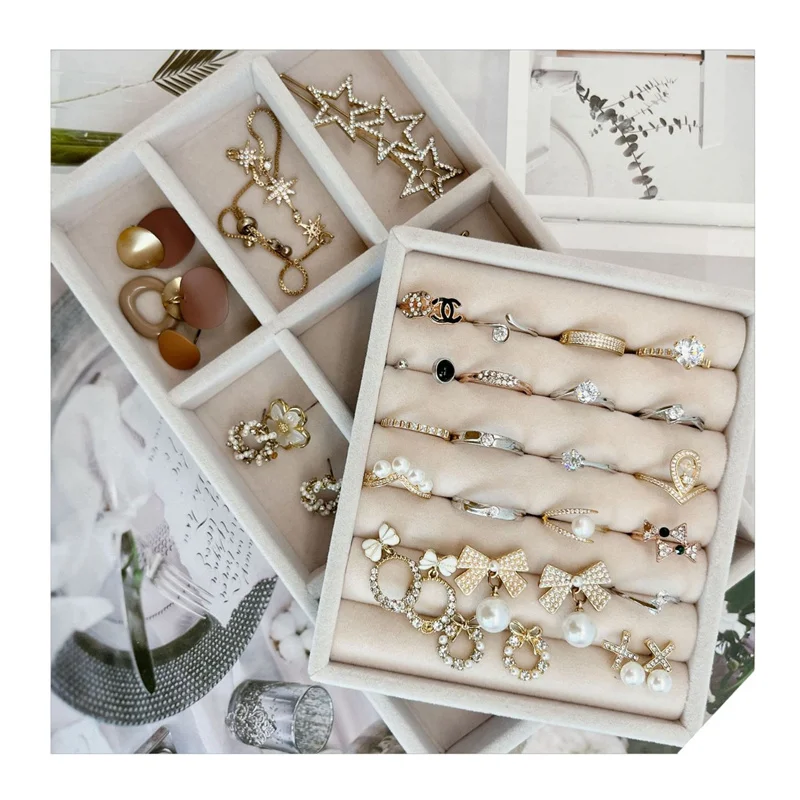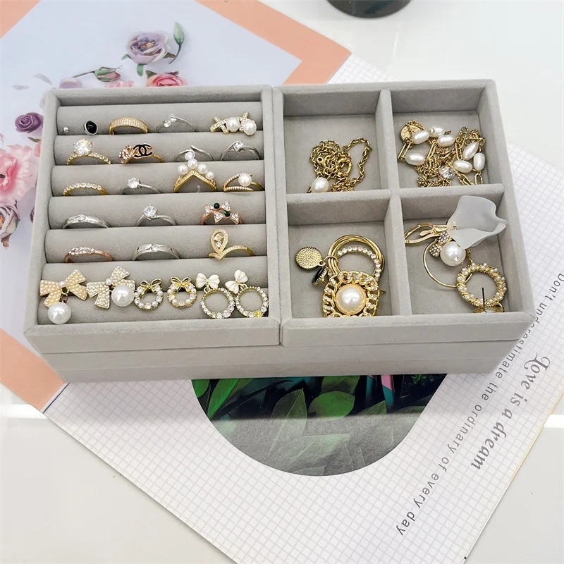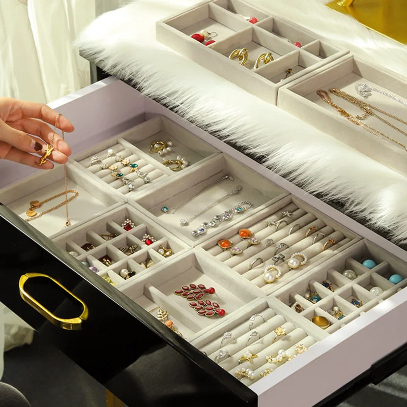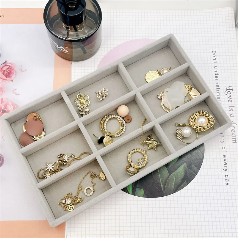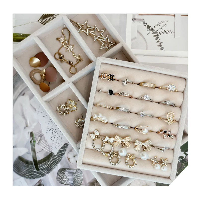 Velvet Jewelry Display Tray Case Stackable Jewelry Holder Portable Ring Earrings Necklace Bracelet Organizer Drawer Storage Box