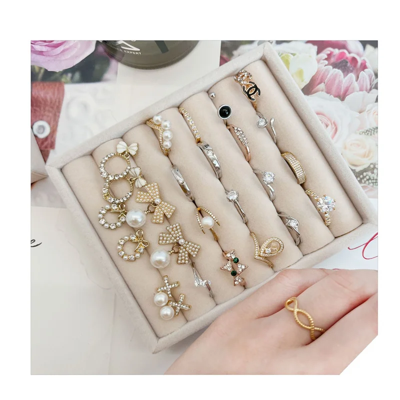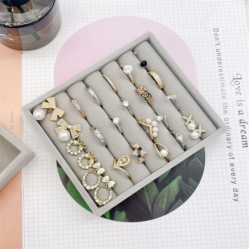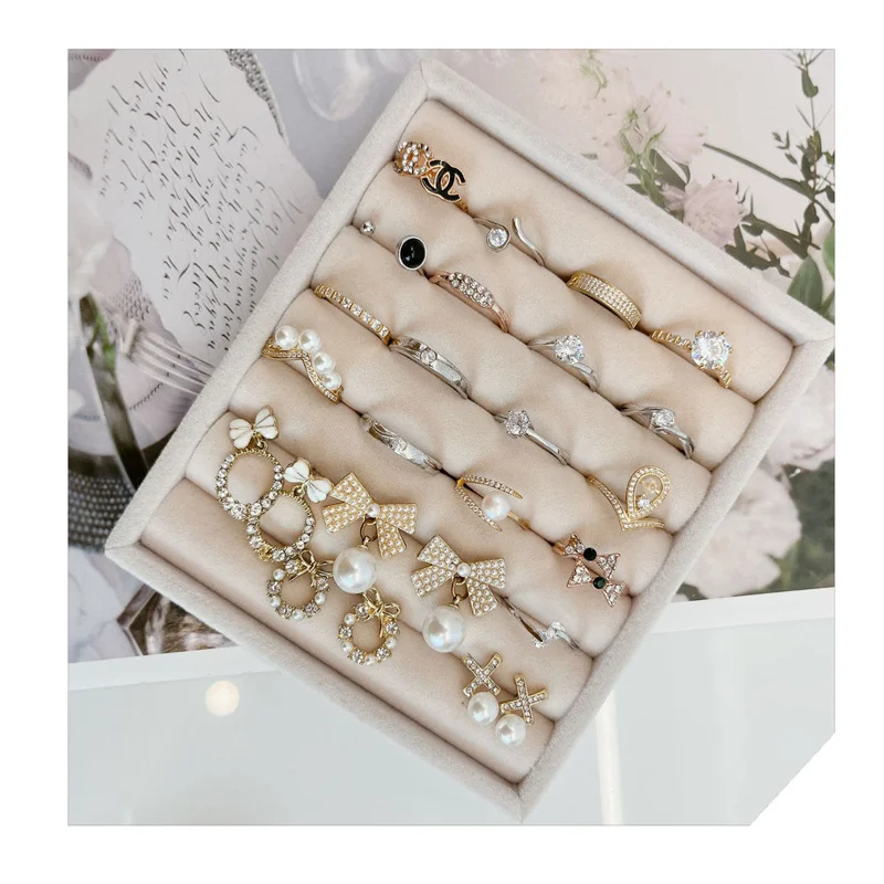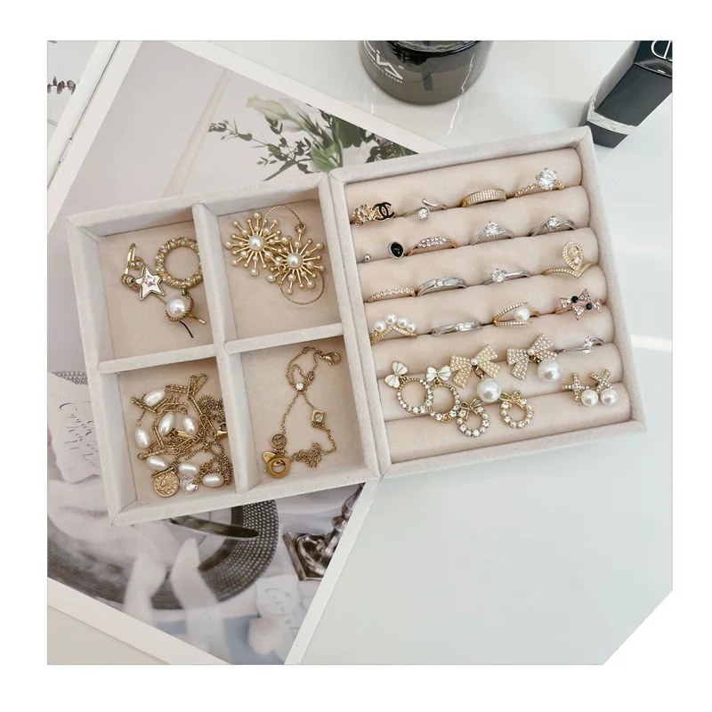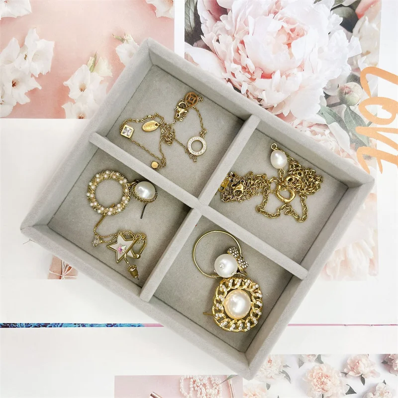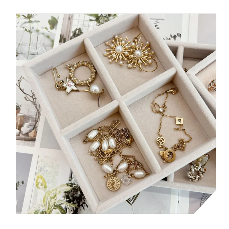Velvet Jewelry Display Tray Case Stackable Jewelry Holder Portable Ring Earrings Necklace Bracelet Organizer Drawer Storage Box