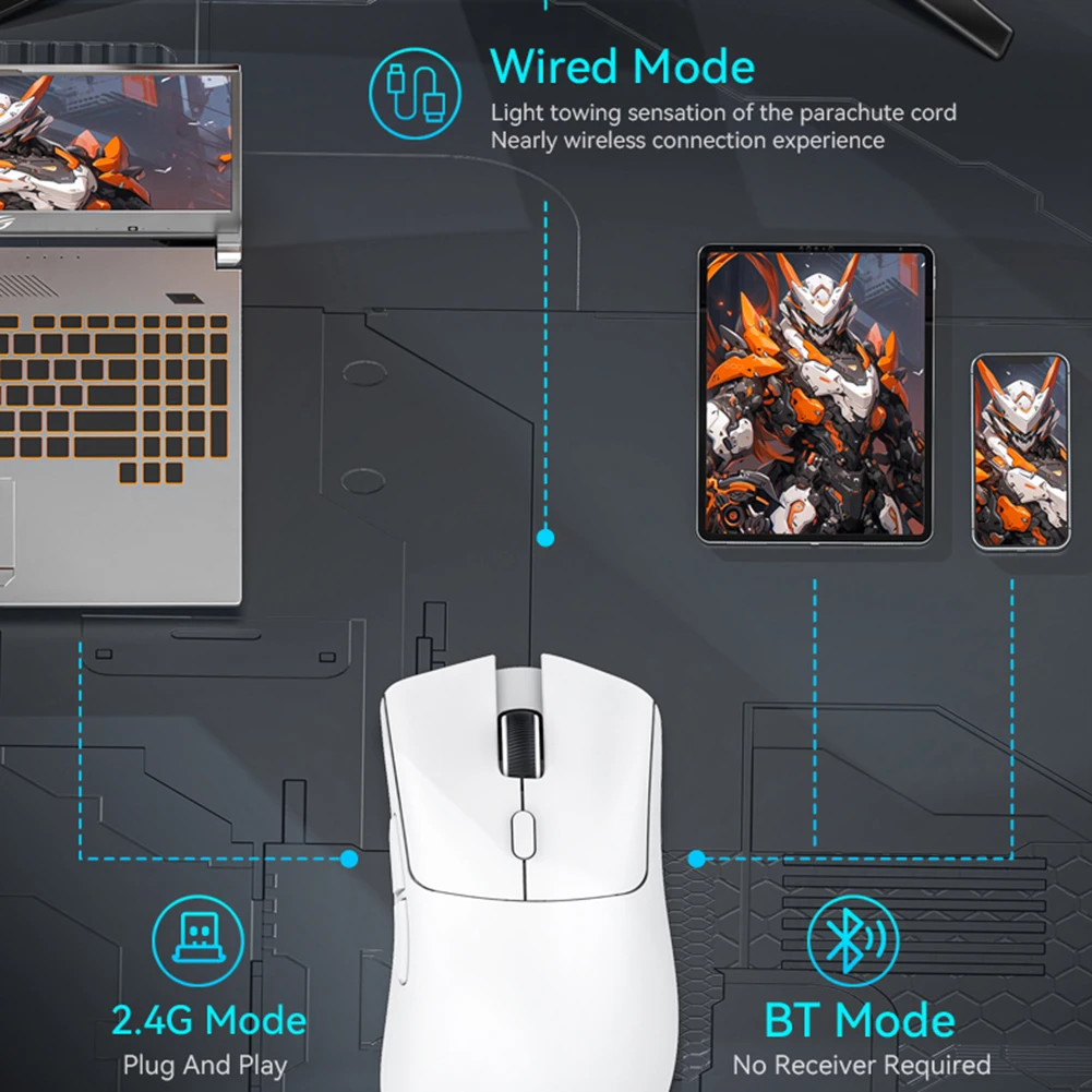 Wireless Gaming Mouse 18000DPI Bluetooth-Compatible Mouse PAW3311 300mAh Ergonomic Computer Mouse Wired/2.4G/BT5.2 for Laptop/PC/iPad/Tablet/Mac/Office/Games