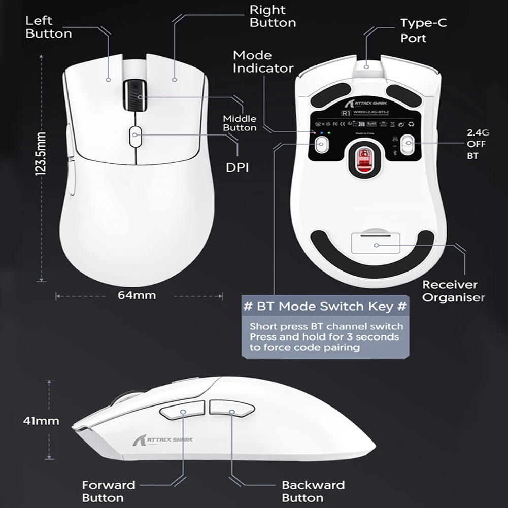 2. PAW3311 High-Performance Sensor: This Bluetooth-Compatible mouse is equipped with the PAW3311 high-performance sensor, delivering excellent tracking and precision. The sensor supports multiple DPI (dots per inch) settings, allowing users to adjust the mouse’s speed and sensitivity to adapt to different gaming environments and needs.